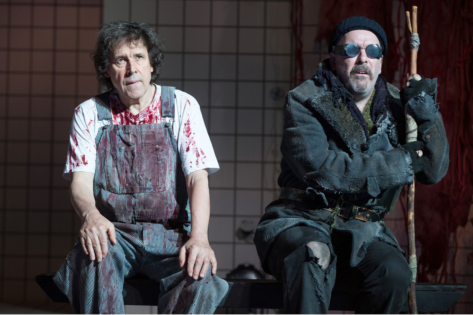 Upon arrival, you take your seat in the quaint theatre that holds about 200 and you can’t help but be entranced with the ceiling to floor white-tiled stage, it’s Oedipus meets Saw II or American Psycho. The lights come up on an older gentleman mopping the floor stained in blood, with blood drenched clothing and rubber apron, as a butcher labored from a long day of slaughter. We watch Stephen Rea, Oedipus/Otto, grapple with the memory of a murder and his dazed akin to it. He is confused and baffled, and speaks in a dissonant poetic manner, “mystery, dissolution, full of fear”. Like the Greek tragedy, Rea is maimed on his left foot (this one is larger than the other with a slight limp) similarly from the original story, his father bound his feet and left him for dead in the desert as a baby in order to avoid a tragic prophecy. Later in the play he is speaking with his daughter about his confused fate, further, his short-comings as a father and the demons that follow him, all while ringing out strips of cloth, in a bucket full of watered-down blood. As an audience member, you cannot help but notice that their dialogue is about fertility and the lack there of in his daughter, “you’re better off barren” he says which resembles the speech of Luke in the Bible, “blessed are the barren”. Ideas such as these bring us from the modern interpretation right back to the fact that this is a Greek tragedy pre-dating biblical New Testament ideas, nonetheless still carrying the themes of lineage, birth right, and the potential difference between fate and free will.